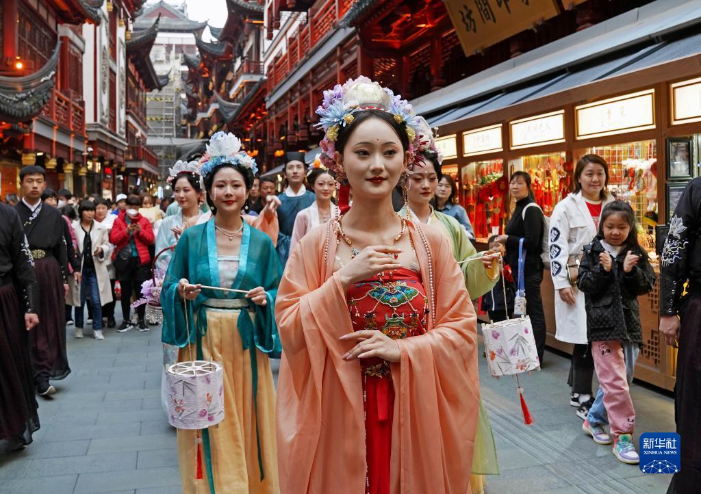 当日,上海豫园2023“仲春花朝节”沉浸式游园系列活动拉开帷幕。作为“节气江南”系列活动之一,豫园“仲春花朝节”以古时花朝节为灵感,通过花车、巡游、市集、装置等,让游客感受国风韵味,畅游春日豫园。
