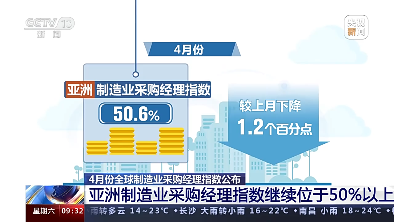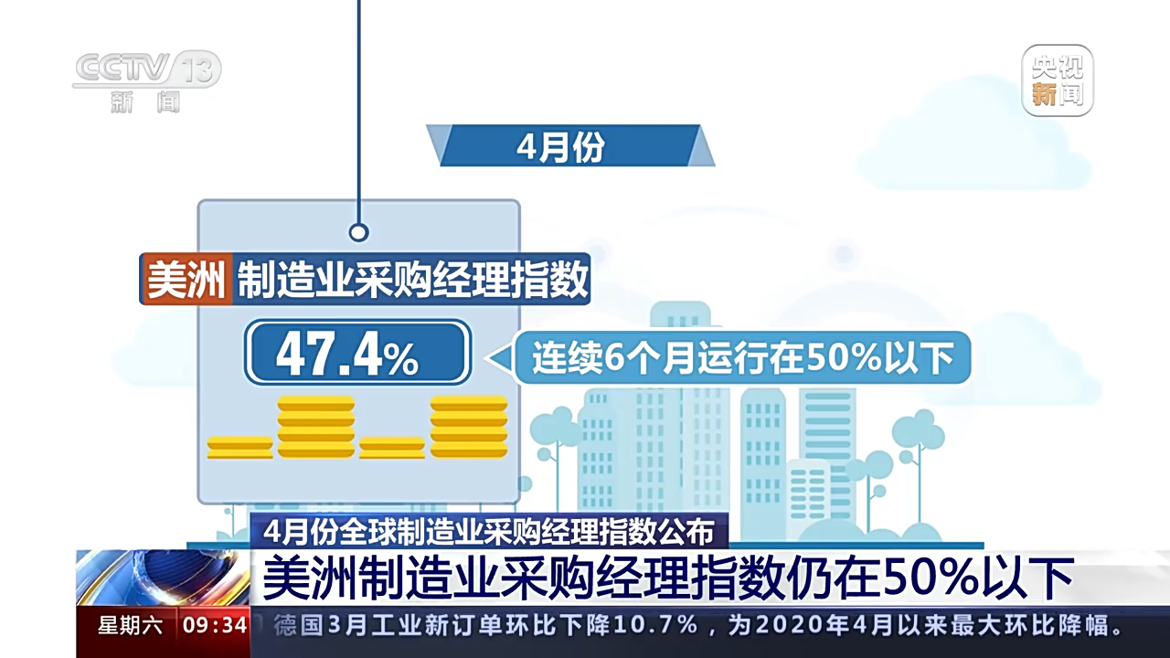 中国物流与采购联合会今天(6日)公布了4月份全球制造业采购经理指数。指数连续两个月环比下降,并且连续7个月运行在50%以下,显示全球经济下行压力有所加大,经济复苏动能偏弱。