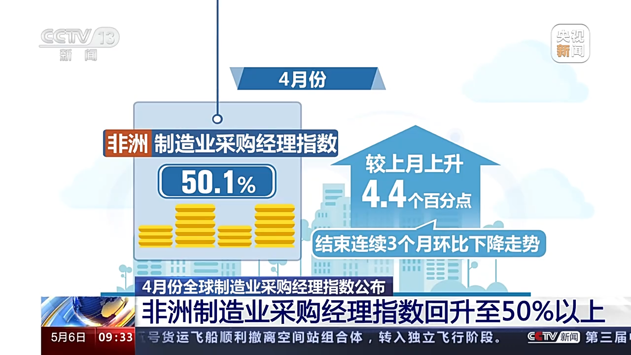 4月份,非洲制造业采购经理指数为50.1%,较上月上升4.4个百分点,结束连续3个月环比下降走势。分析认为,“一带一路”倡议和非洲自贸区的持续推进,是有利于非洲经济恢复的重要力量,对于非洲基础设施建设和贸易便利化有更为直接的影响。