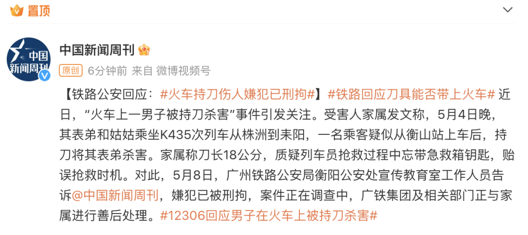 近日,有网友发布视频称,5月4日晚K435次列车上一男子被人持刀杀害。