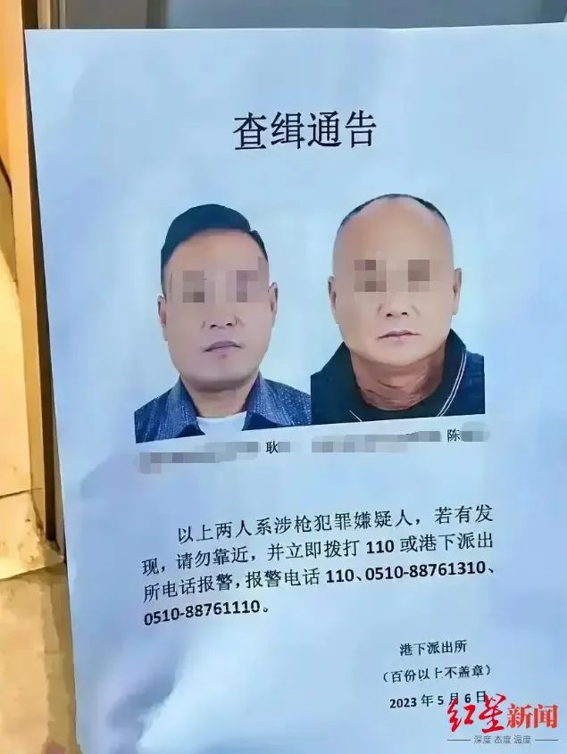 5月4日凌晨,江苏江阴毗陵东路一带发生枪击案。红星新闻记者近日从当地一份《查缉通告》获悉,耿某与陈某某系涉枪犯罪嫌疑人,市民若有发现,请勿靠近,并立即拨打报警电话。