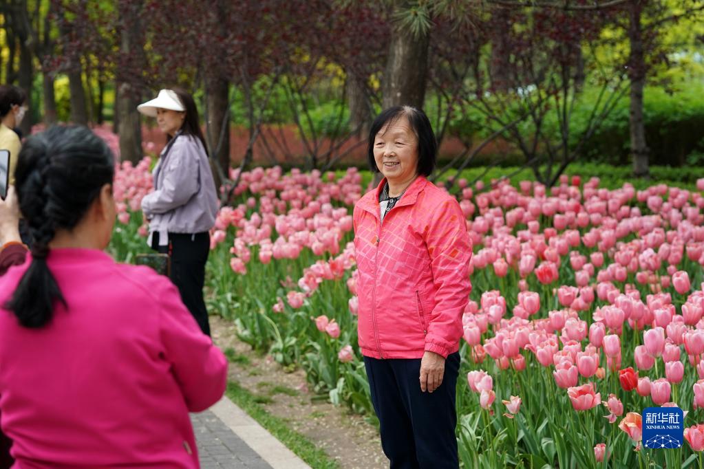近日,山西省太原市迎泽公园内各色郁金香竞相绽放,吸引游人前来观花赏景。