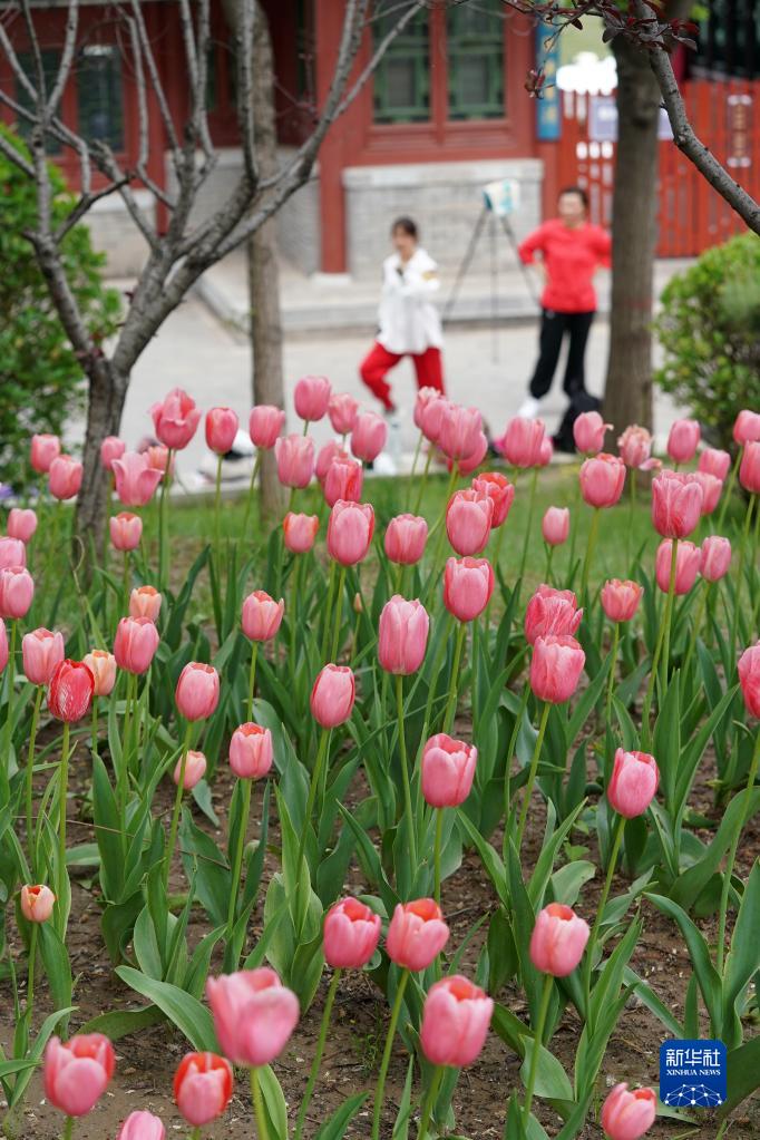 近日,山西省太原市迎泽公园内各色郁金香竞相绽放,吸引游人前来观花赏景。
