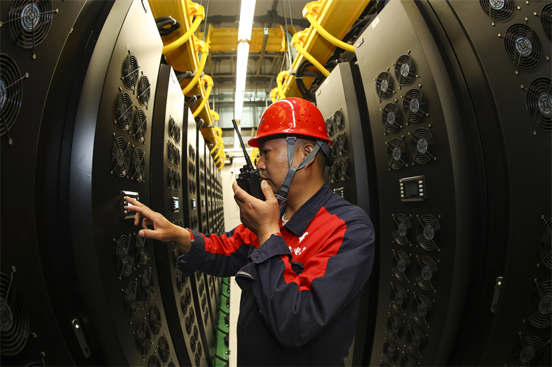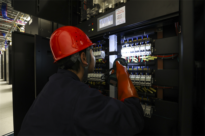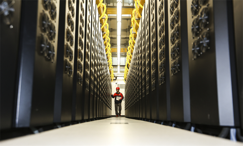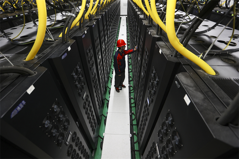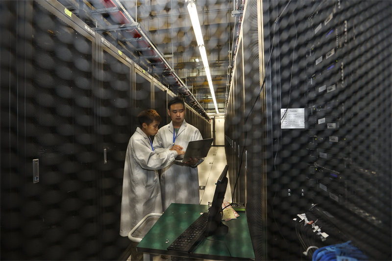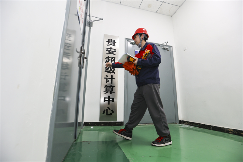 维护人员在贵安超算中心数据机房内巡检