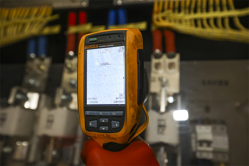 维护人员利用测温仪测试运行温度