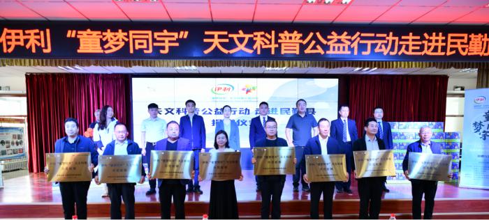在浩瀚沙海中邂逅最美星空,即使身处大漠之中,孩子们也同样渴望探求宇宙的奥秘。5月29日,伊利集团携手中华少年儿童慈善救助基金会(简称“中华儿慈会”)启动的伊利“童梦同宇”天文科普公益项目,走进甘肃省武威市民勤县,为当地的小学生捐赠了1600套天文科普课程,并为民勤县16所小学挂牌“天文科普示范校园”,以实际行动助力民勤县这座西北沙漠小城的天文科普事业发展,激发孩子们探索星空的求知热情,守护他们的天文梦想。