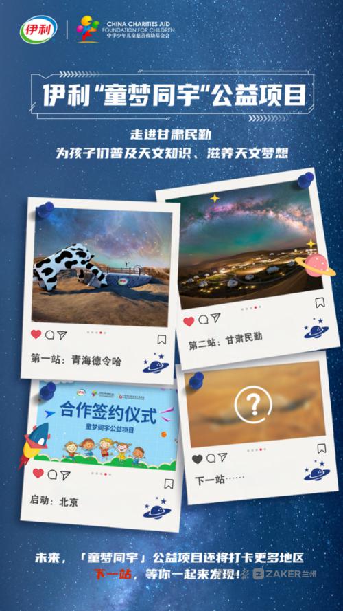 从青海德令哈到甘肃民勤,从高原藏地到沙漠小城,伊利“童梦同宇”公益项目给偏远地区的青少年带去优质的天文科普资源,让他们即使身处僻地也能自由放飞天文梦想。未来,伊利将继续携手中华儿慈会,推动“童梦同宇”公益项目在全国范围内的开展,并吸引更多社会力量的参与,支持更多青少年守护梦想,助力科技强国梦的实现。