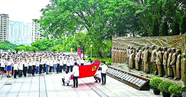 广大党员在红岩村面对党旗,重温入党誓词