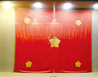 得到新中国成立的消息,在国民党监狱里的江竹筠(江姐)和狱友们凭想象缝制了一面五星红旗