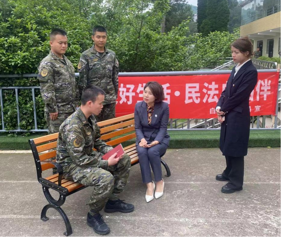 近日,贵阳市白云区法宣办、区司法局、区退役军人事务局、贵州富慧律师事务所、都拉营街道退役军人服务站联合开展“美好生活·民法典相伴”送法进军营活动,贵阳武警支队某中队30余名官兵参加。