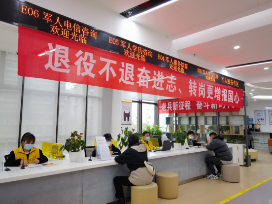 在服务专区返乡退役士兵可集中办理退役报到、档案交接、预备役登记、党团组织关系转接咨询学费补偿减免咨询等业务。专区同步开展春季征兵宣传、参军登记、退役军人和其他优抚对象信息数据采集就业创业服务、心理疏导、权益咨询、政策解答、法律咨询以及学历提升咨询和5G拥军优抚专属单卡申领等服务。此外,退役士兵可同步到政务大厅各服务区域退役军人优先窗口优先办理其他政务服务事项。