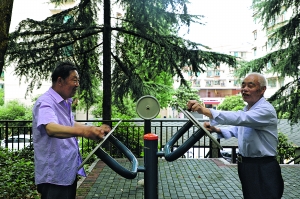 1分钟,走出服务中心径直来到万江小区4栋楼下,这里安装有健身器材、居民议事亭,该楼栋还加装了电梯。满琳介绍,万江小区为老旧小区,多数房屋已有二十多年的历史,且小区老年人占比达22%。为提高居民生活品质,万江社区将加装电梯和健身器材纳入生活圈需补足的要素中。如今,万江社区内共加装电梯9台,其中6台已完成并启用,3台正在加紧安装中;共增设了28个健身器材、32张休闲长椅。