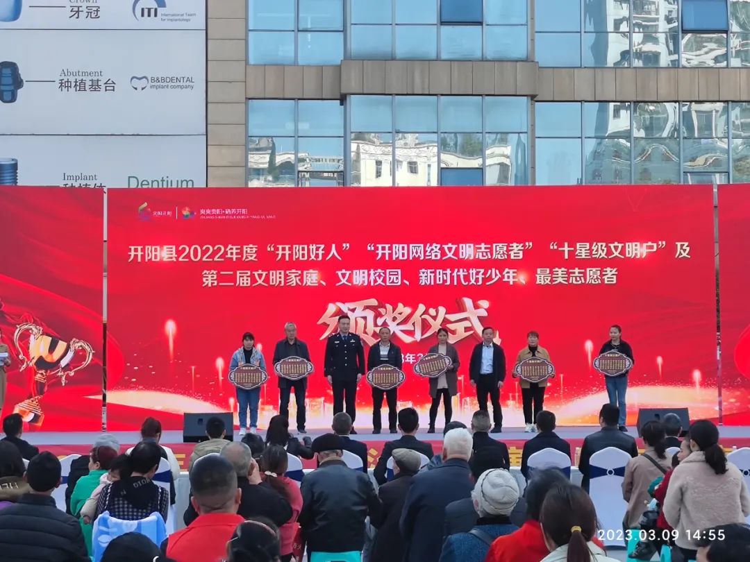 培树典型“带”,彰显榜样力量。开展“身边好人”“文明家庭”“最美志愿者”等评选活动,大力表彰先进,对全县道德模范、身边好人等先进典型人物建档立卡,并在春节期间组织开展走访慰问活动,在全社会形成崇德、向善的浓厚氛围。2023年,评选表彰2022年度“开阳好人”11人、“开阳网络文明志愿者”5人,评选表彰第二届文明家庭5户、文明校园3所、新时代好少年6人、最美志愿者10人。