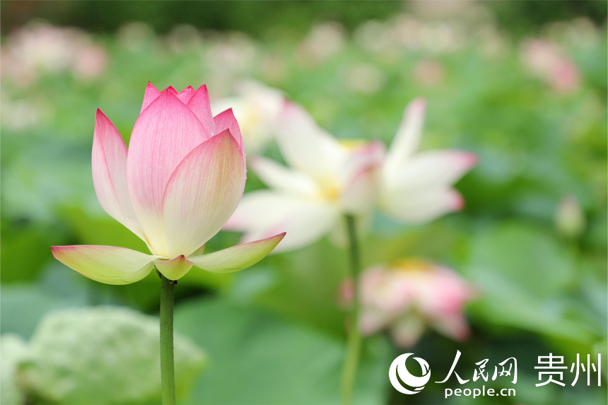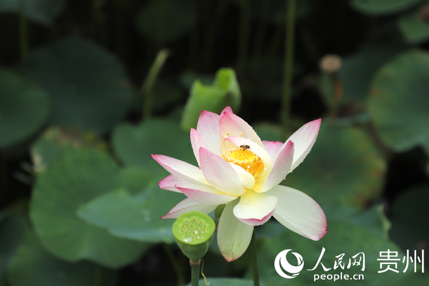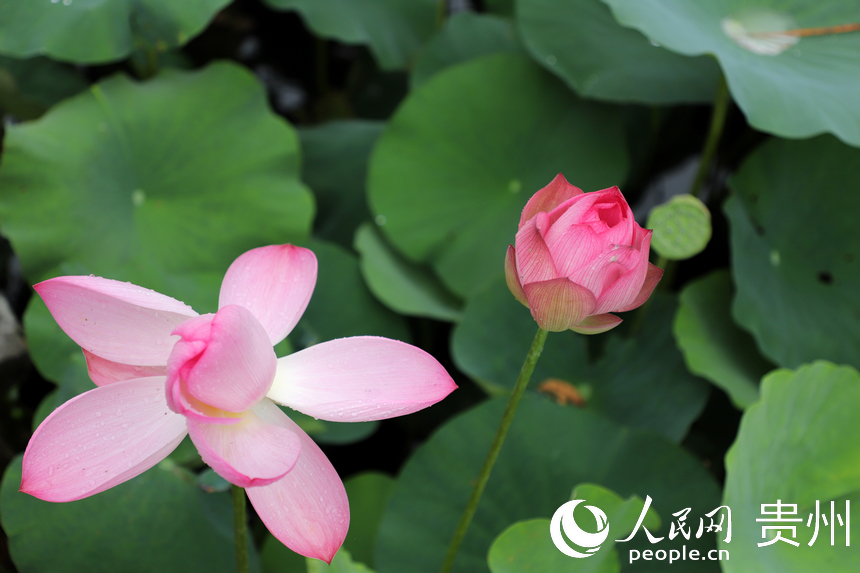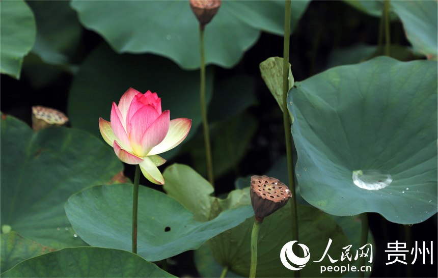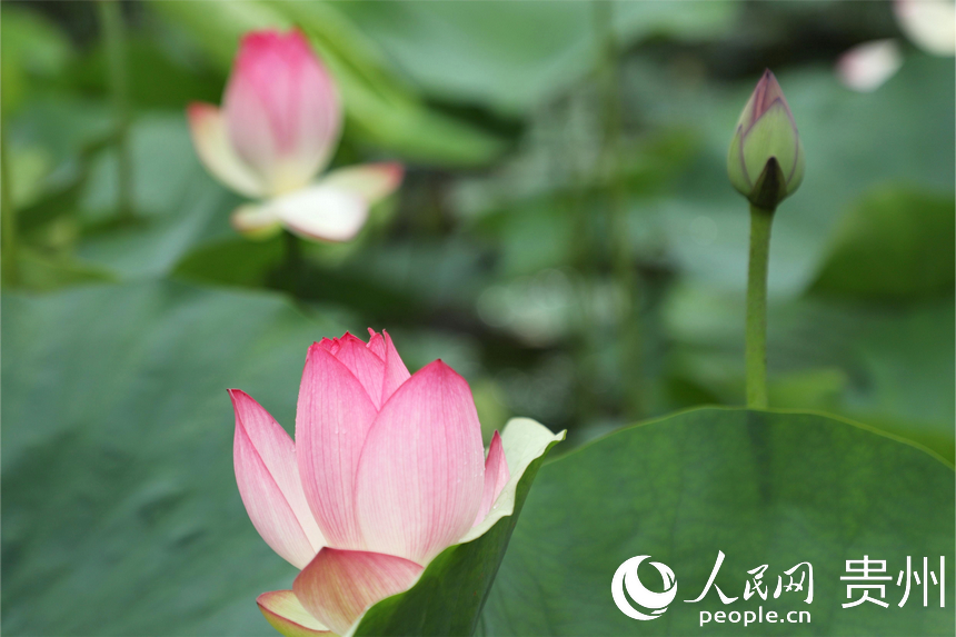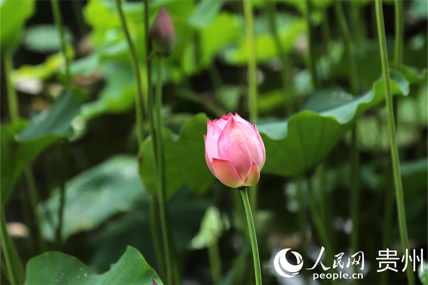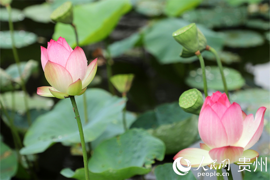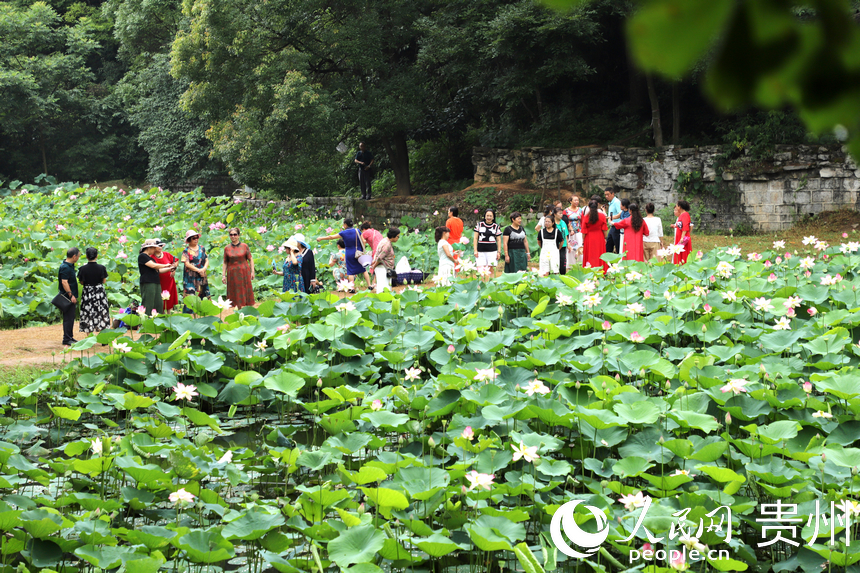 人民网贵阳7月10日电(顾兰云)藕花深处,夏日悠长。7月9日正逢周末,贵州省贵阳药用植物园内夏荷悠悠,晴光映荷;田田荷叶,密密实实;袅袅荷风,香远溢清。贵阳药用植物园位于贵阳市中心城区南明和小河交界处,门票3元/人。从其东门进入,沿着林间小道顺山下坡便能看到风雨桥前后的荷花池,荷花根据不同品种分散种植在5个池塘,粉色、白色,娇艳欲滴。