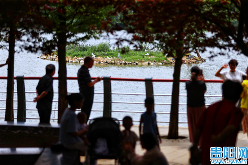 贵阳网·甲秀新闻讯 7月27日,游客在贵阳市观山湖区观山湖公园欣赏成群结队的苍鹭、白鹭等鸟类翩翩起舞的醉美风景。优良的生态环境不仅为贵阳赢得格外凉爽的气候,同时也成功吸引了不少包括国家保护动物在内的野生鸟类飞进贵阳筑巢繁衍生息。