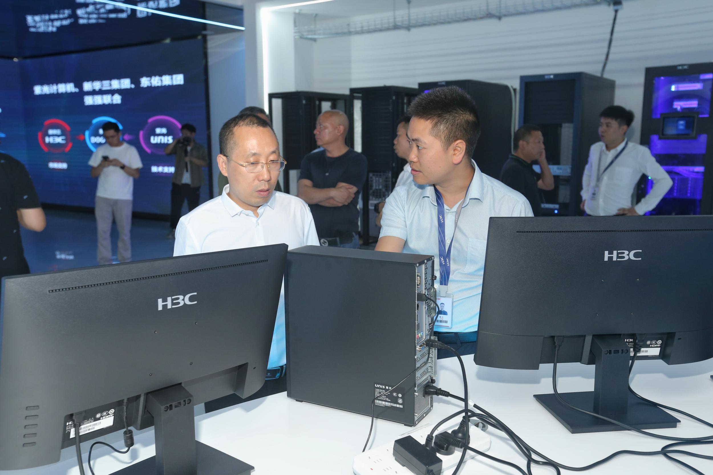 投产仪式上,嘉宾们参观了计算机产线及计算机展厅。紫光计算机董事长兼总裁黄辉华表示,黔南州黔南州H3C/UNIS计算机生态产线项目,由新华三集团、紫光计算机提供市场及技术支持,东佑集团、慧点数码共同出资建设,是紫光计算机在郑州总部以外的第一条产线,是真正意义上贵州人自己的电脑品牌。项目投产标志着紫光计算机将与东佑集团强强联合,发挥更丰富的资源联动效应,服务和开拓更广阔的PC市场,为更多行业创新和产业升级提供强有力支撑,为贵州省高质量发展打造强劲引擎。