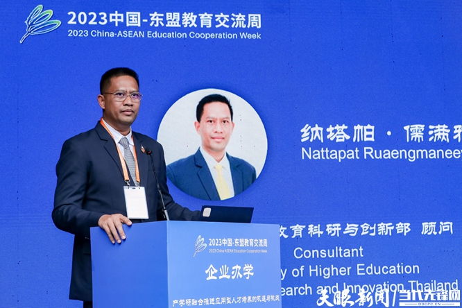 泰国高等教育科研与创新部顾问纳塔帕·儒满雅博士阐述了目前泰国在产学研合作方面面临的机遇与挑战。他说,产学研合作的新模式不仅仅是泰国未来发展的必然选择,也是为了适应时代发展的必然要求。产学研合作关系的创新发展,需要学校和企业双方共同发力。一方面,学术界与商界要立足社会发展需要,充分利用新兴技术,以更加灵活、敏捷的合作模式来培养应用型人才;另一方面,学校要紧跟时代发展方向,立足产业需求,加强对应用型导师的培养。