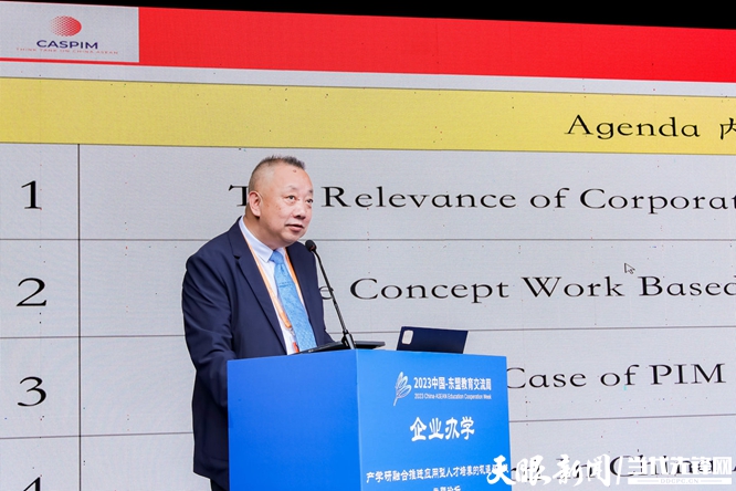 泰国正大管理学院助理校长、中国东盟研究中心主任汤之敏以正大管理学院为例,运用奥斯托洛的三循环机制法,深刻阐释了工作本位教育理念与企业办学的优势及学校、企业双导师在人才培养中的角色定位。他建议,各高校要建立中国-东盟企业大学联盟,共享国际教育资源,探讨办学模式,交流办学理念,制定中国-东盟有企业大学特色的质量标准。