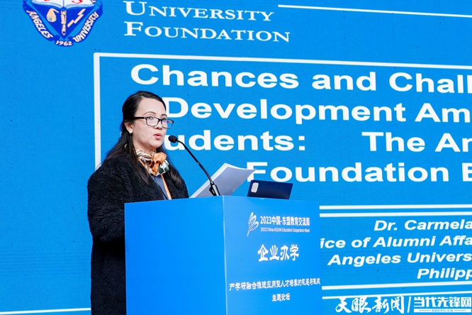 菲律宾安吉尔斯大学校友事务及就业服务处处长卡梅拉·迪森博士作主旨演讲