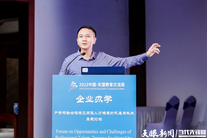 8月28日,2023中国-东盟教育交流周“企业办学:产学研融合推进应用型人才培养的机遇与挑战论坛”在贵阳信息科技学院阳明书院举行。来自菲律宾安吉尔斯大学、印度尼西亚STIKI Malang学院、马来西亚世纪大学、马来西亚泰莱大学、泰国斯巴顿大学、江西科技师范大学软件动漫学院、北京理工大学珠海学院、成都锦城学院、海南科技职业大学、贵州民族大学、贵州食品工程职业技术学院等高校、企业代表齐聚一堂,探讨中国-东盟高校在高水平应用人才培养、产教融合、科研合作等领域的发展之路。