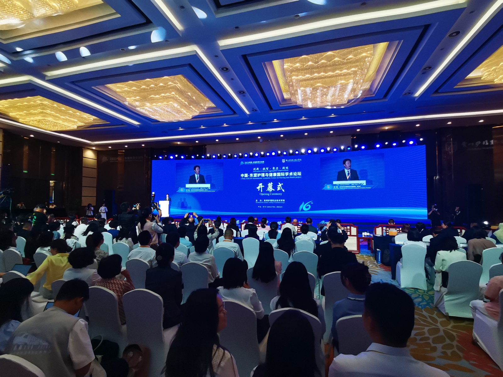 论坛开幕式上,贵州省政协副主席张光奇并致辞,他表示,贵州将立足时代发展新阶段,秉承“平等互信、开放创新、互学互鉴、合作共赢”的精神,坚持高擎人类卫生健康共同体旗帜,不断推动服务构建更为紧密的中国-东盟命运共同体,服务中国-东盟教育合作与人文交流、服务“一带一路”建设、服务贵州全方位对外开放,服务全球护理与健康事业发展新格局。