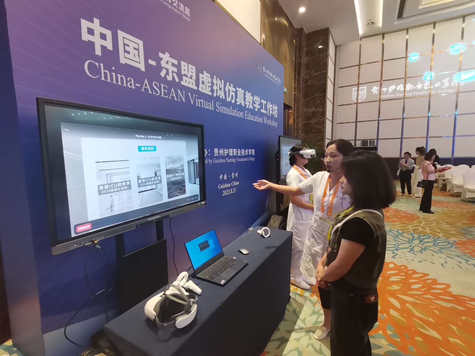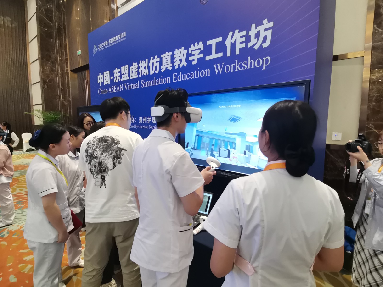 中国-东盟虚拟仿真教学工作坊让参会嘉宾实际体验VR技术在护理职业教育方面的应用场景