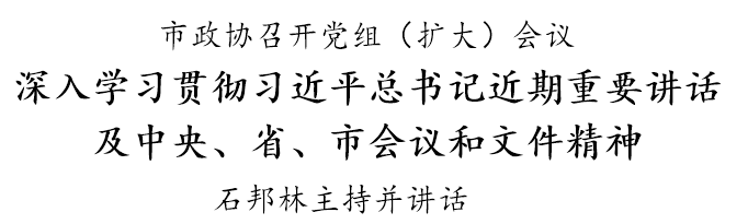 贵阳头条讯 6月23日,市政协召开党组(扩大)会议,传达学习习近平总书记在中共中央政治局第三十次集体学习和在青海考察时的重要讲话精神、在《求是》杂志发表的《以史为镜、以史明志,知史爱党、知史爱国》重要文章,以及中央、省委、市委有关会议和文件精神,研究贯彻落实措施。市政协党组书记、主席石邦林主持并讲话。