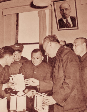 1955年,刘少奇(左四)、邓小平(左三)等视察沈阳航空发动机厂