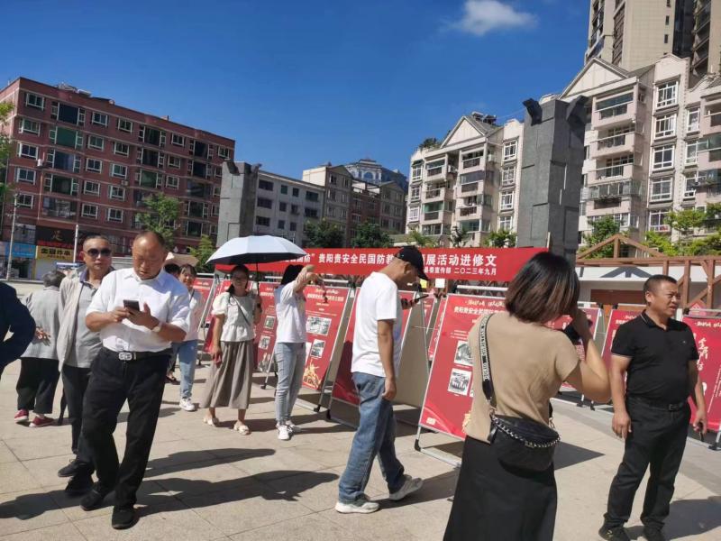 2023年9月5日,修文县阳明洞街道组织辖区各村村民群众及干部职工50余人前往龙岗广场参与“强国复兴有我·跟党走强国防”贵阳贵安全民国防教育主题展进村镇活动。