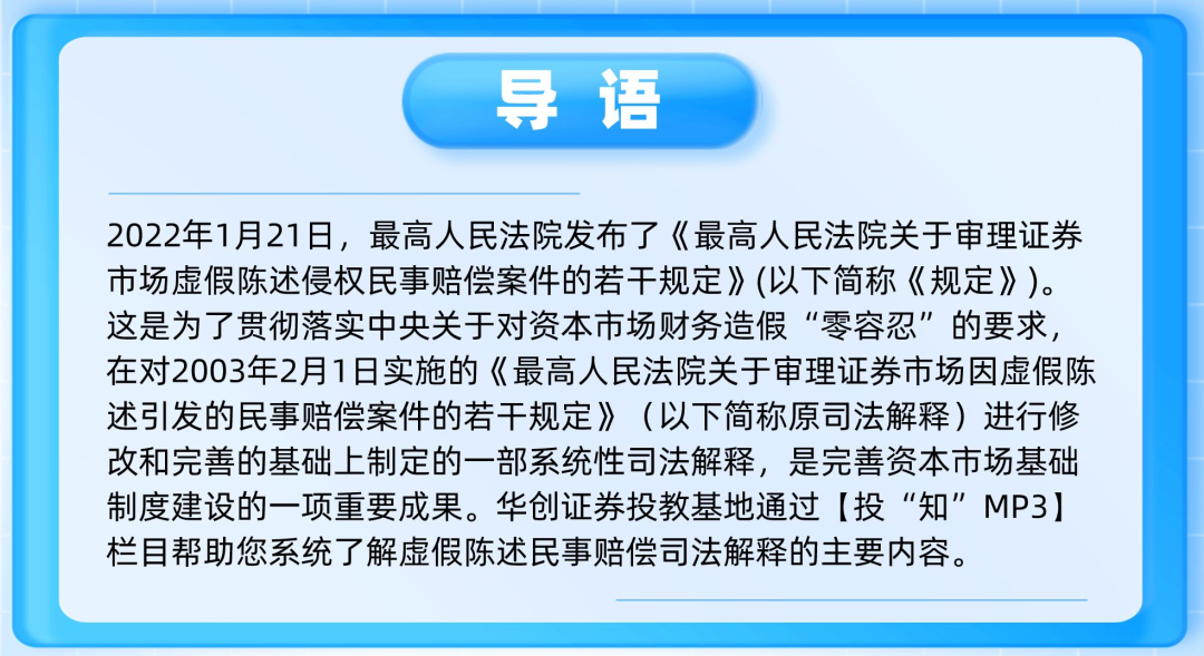 《规定》相较于原司法解释,扩大了其应用范围。《规定》第一条规定了“信息披露义务人在证券交易场所发行、交易证券过程中实施虚假陈述引发的侵权民事赔偿案件,适用本规定”,同时,《规定》在第一条第二款中明确除证券交易所、国务院批准的其他全国性证券交易场所之外,在依法设立的区域性股权市场中发生的虚假陈述行为,也可参照适用《规定》,实现打击证券发行、交易中虚假陈述行为的市场全覆盖。