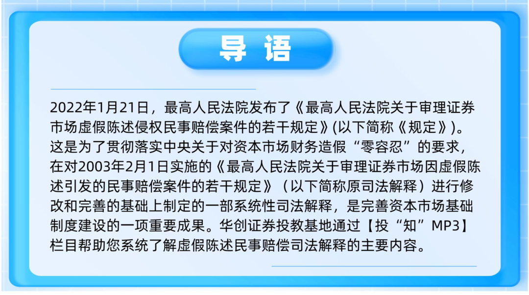 此次发布的《规定》结合证券法规定,以及境外制度经验,建立了“预测性信息安全港”制度,以进一步督促上市公司提高信息披露质量,鼓励并规范发行人自愿披露盈利预测和发展规划等前瞻性信息。根据《规定》第六条:“原告以信息披露文件中的盈利预测、发展规划等预测性信息与实际经营情况存在重大差异为由主张发行人实施虚假陈述的,人民法院不予支持,但有下列情形之一的除外:(一)信息披露文件未对影响该预测实现的重要因素进行充分风险提示的;(二)预测性信息所依据的基本假设、选用的会计政策等编制基础明显不合理的;(三)预测性信息所依据的前提发生重大变化时,未及时履行更正义务的”。