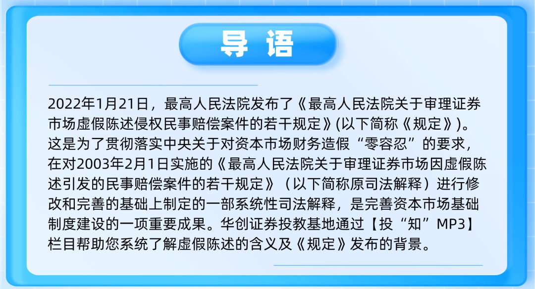 《规定》的发布,是最高人民法院贯彻落实中央对资本市场财务造假“零容忍”要求,依法提高违法违规成本、震慑违法违规行为的重要举措。民事责任制度的充实和完善,进一步强化了资本市场制度供给,畅通了投资者的权利救济渠道,夯实了市场参与各方归位尽责的规则基础,健全了中国特色证券司法体制,为资本市场的规范发展提供了更加有力的司法保障。