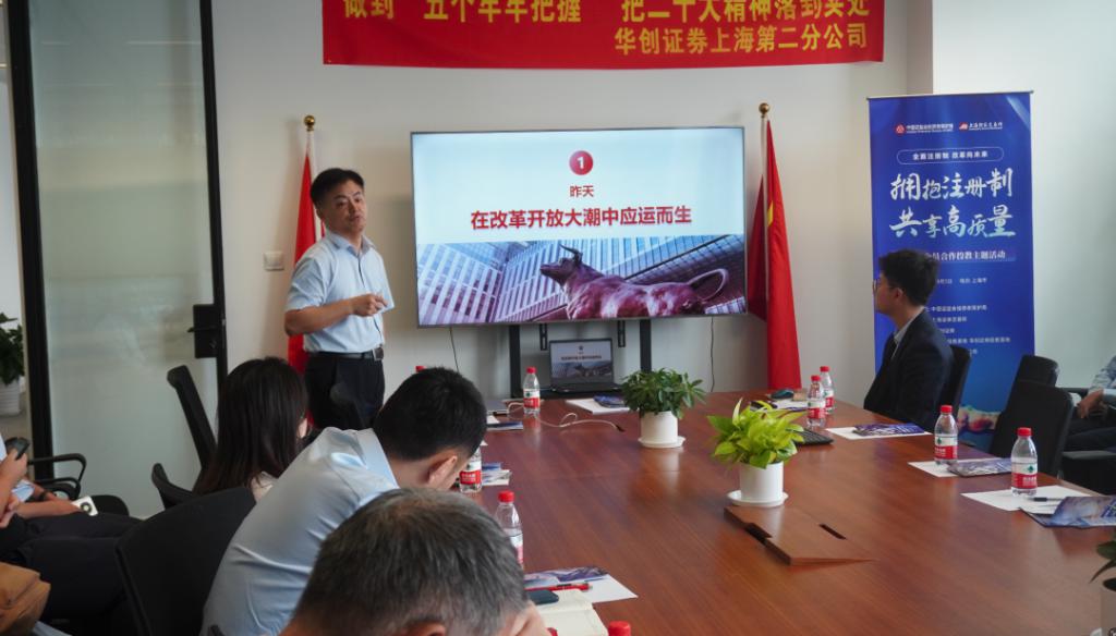为了更好的落实全面实行股票发行注册制下投资者教育保护工作,维护广大投资者的合法权益,帮助投资者了解全面实行股票发行注册制改革重要意义和制度规则,华创证券投教基地在上海举办了 " 拥抱注册制 共享高质量 " 主题活动。此次活动得到了上海证券交易所、华创证券上海分公司的大力支持,共有 50 余名上海地区的投资者参加了活动。