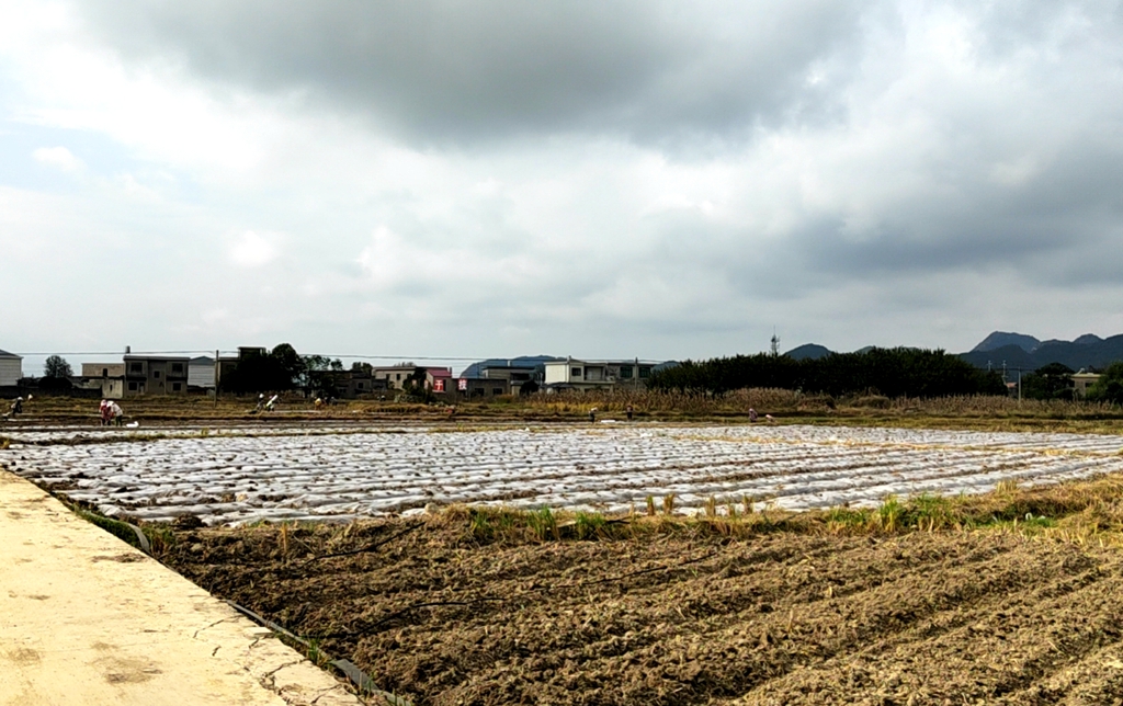 深秋时节,水稻丰收后的高峰镇龙宝村,新的希望在地里孕育:村里新增的500亩羊肚菌正在整地、覆膜。