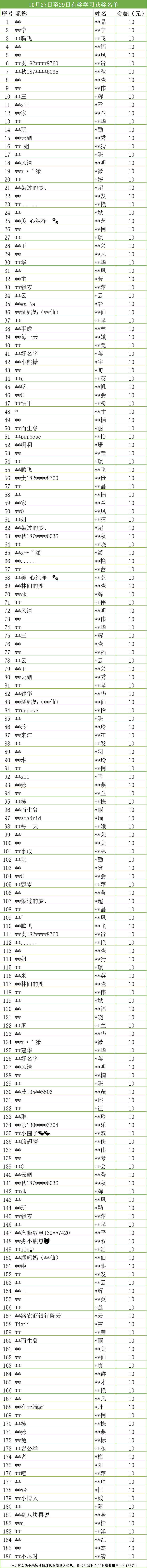 上周末的“有奖学习”获奖名单