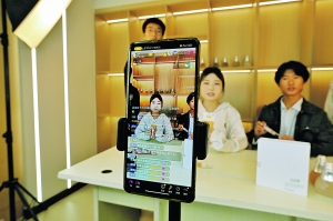 贵州工商职业学院电子商务系学生在电商直播中心进行直播带货实训。