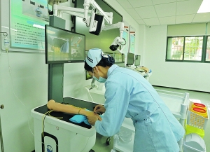 贵州工商职业学院护理学院老师在示教车上进行示范教学。