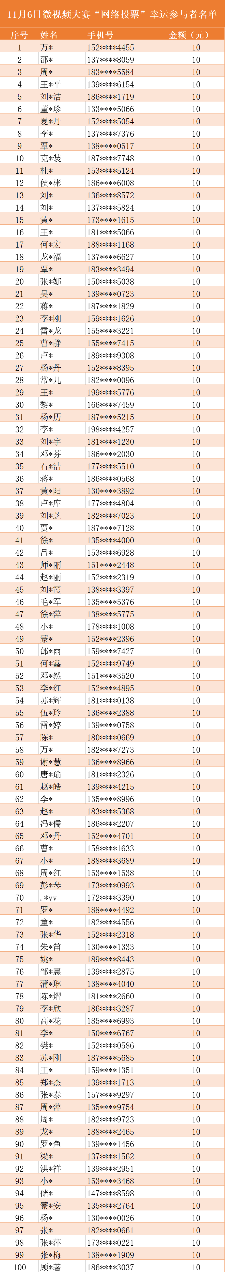 随机抽取100名幸运参与者