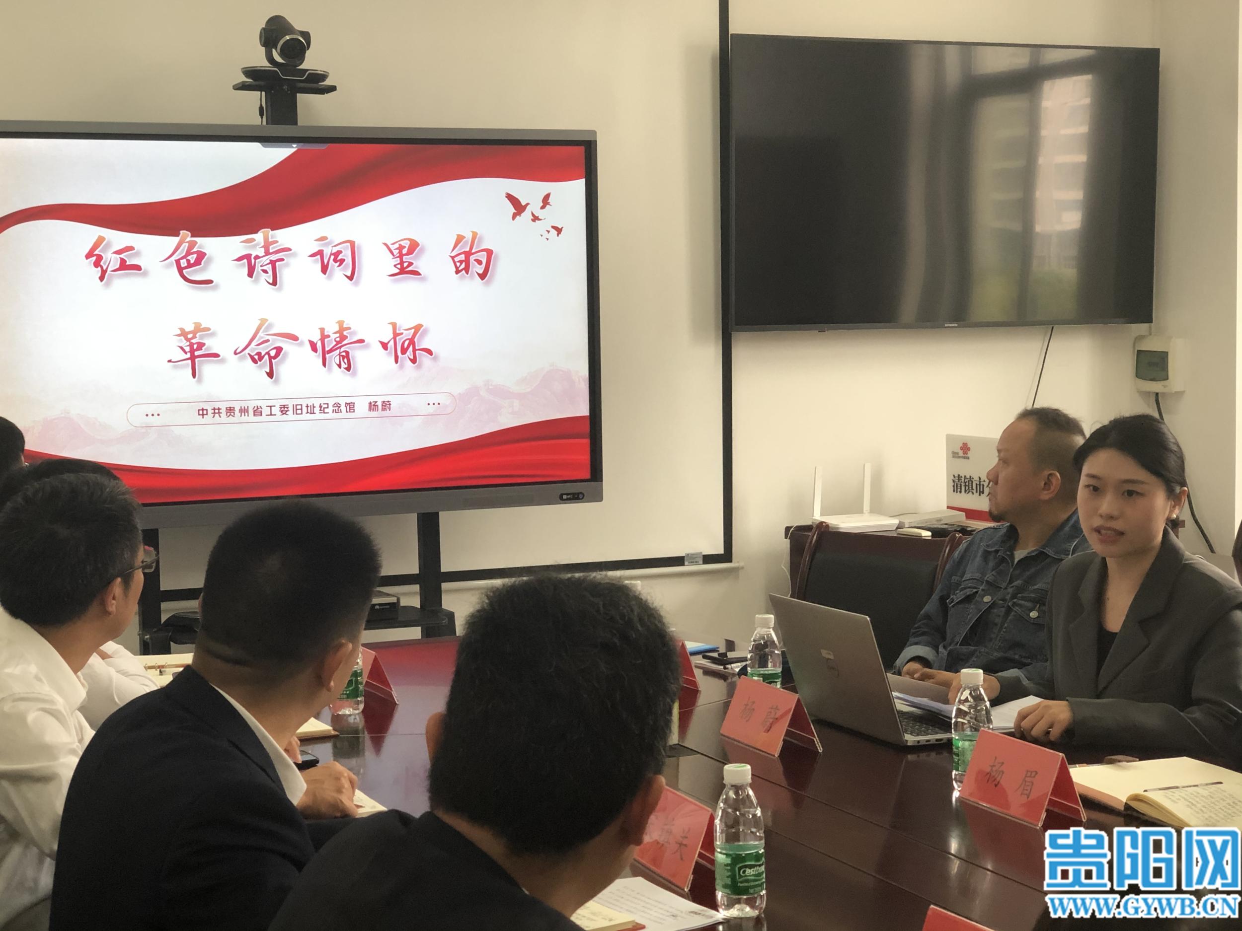 活动中,贵州省长征故事优秀讲述人、中共贵州省工委旧址纪念馆讲解员杨蔚以“红色诗词里的革命情怀”为题,通过《热血》《囚徒歌》等红色诗词讲述了中共贵州省工委第一任书记林青、中共贵州省工委委员黄大陆等先烈为革命事业英勇献身的感人故事,并播放贵州首部重点革命题材电影《征程之星火》的宣传短片,为大家上了一堂生动的党史课。