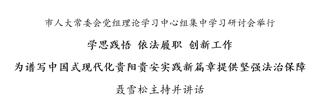 贵阳网·甲秀新闻讯 11月30日,市人大常委会党组理论学习中心组集中学习研讨会举行,市人大常委会党组书记、主任聂雪松主持并讲话。他强调,要深入学习宣传贯彻落实习近平法治思想,与学习贯彻习近平总书记关于坚持和完善人民代表大会制度的重要思想、习近平总书记关于全面深化改革的重要论述结合起来,学思践悟、依法履职,创新做好新时代人大工作,为深入实施“强省会”行动注入改革动力,为谱写中国式现代化贵阳贵安实践新篇章提供坚强法治保障。