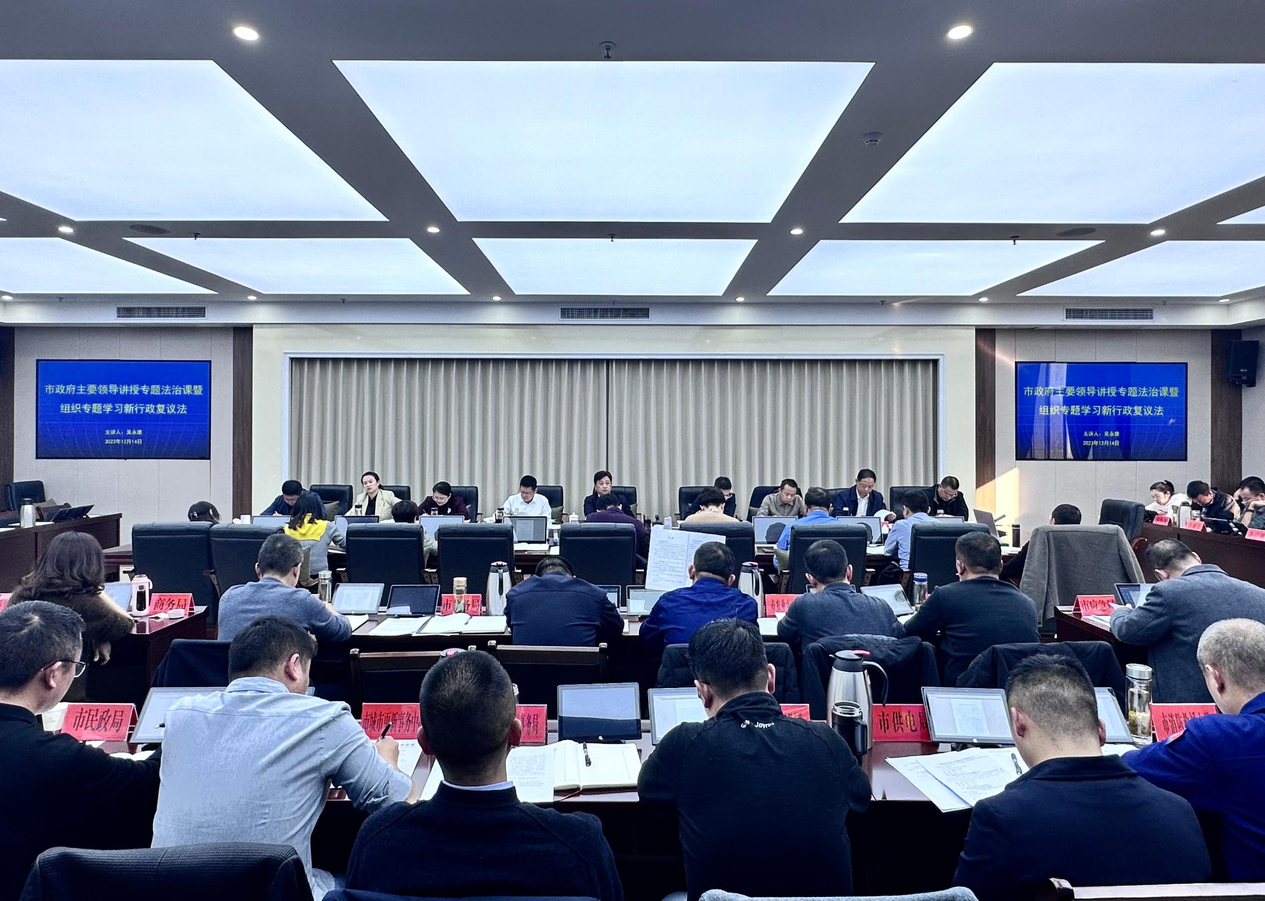 12月14日,清镇市委副书记、市长吴永康围绕习近平法治思想和新修订的行政复议法为政府系统党员干部上专题法治课。