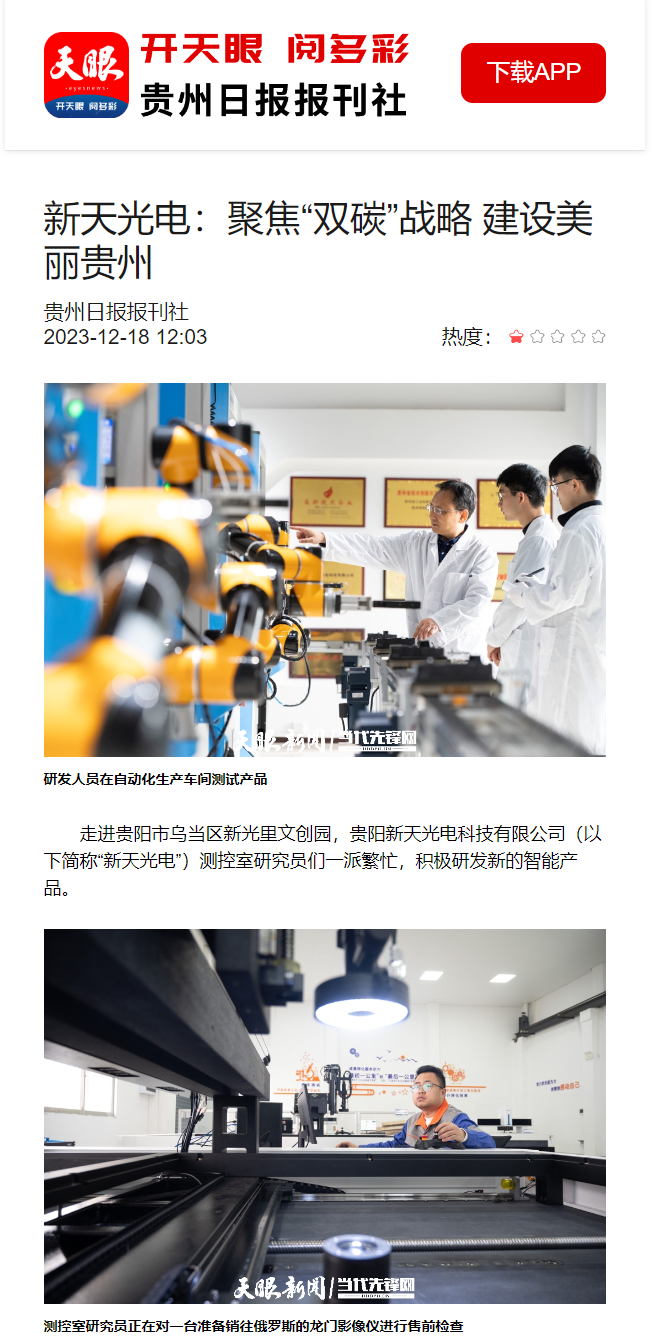 12月18日,天眼新闻推出报道,重点关注市工投公司下属企业新天光电智能产品研发。报道全文如下: