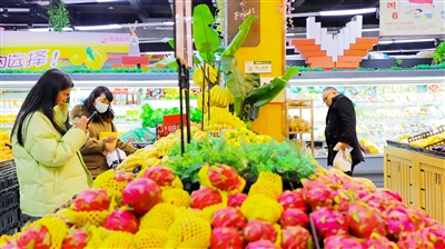 走进众力佳诚超市(爱民广场店),新鲜的蔬果整齐摆放,市民有序选购,不时有工作人员理货、补货。
