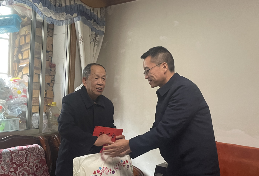 在刘深灵家中,慰问组与他亲切交谈,询问他的身体情况和家人的工作生活状况。今年80岁的刘深灵建立“蓬莱书院”,引导带动群众传承弘扬中华优秀传统文化,助力乡风文明。慰问组仔细了解书院的开办情况,鼓励他们继续传承家庭美德和优良家风,为乡村振兴贡献力量。