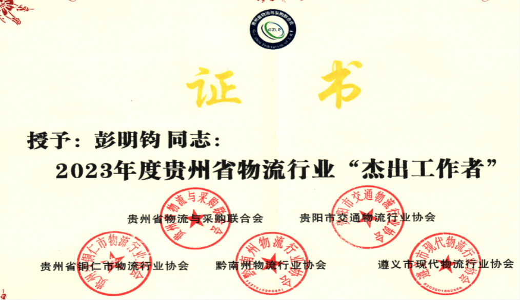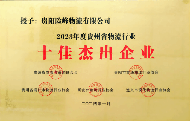 近日,贵州省物流与采购联合会数智创新年会暨贵州省物流与供应链大数据综合服务平台发布会在贵阳召开,会上向2023年为物流行业作出突出贡献的企业及行业带头人颁发奖牌和证书。贵阳险峰物流有限公司(以下简称“险峰物流”)被授予“常务副会长单位”,同时,凭借着物流运输优势荣获2023年度贵州省物流行业“十佳优秀企业”称号,险峰物流党支部书记、执行董事、总经理彭明钧荣获2023年度贵州省物流行业“杰出工作者”称号。