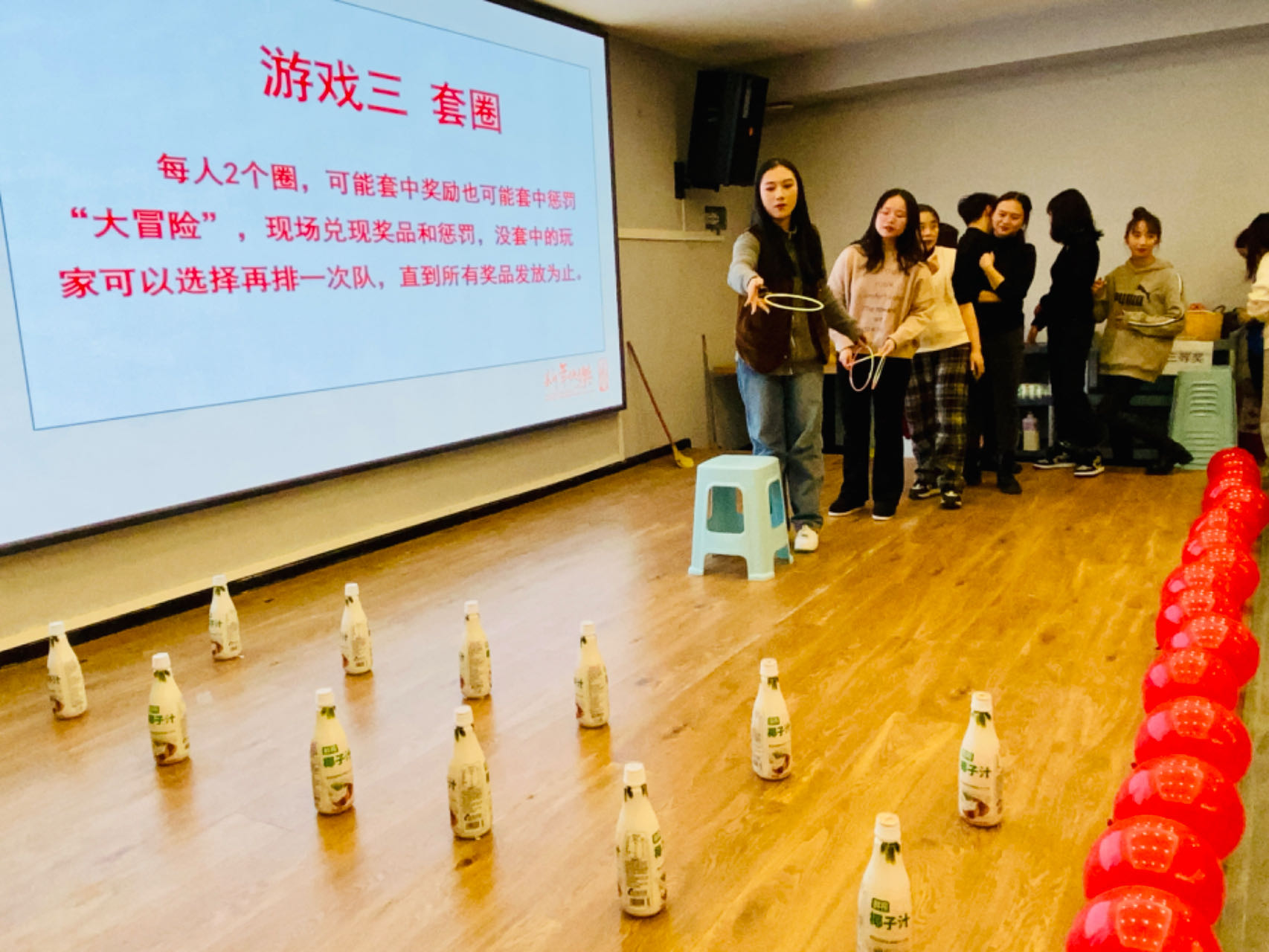 在游戏互动环节,抢板凳、套圈……丰富的活动拉近了青年们的情感距离,现场欢声笑语不断,气氛高潮迭起。