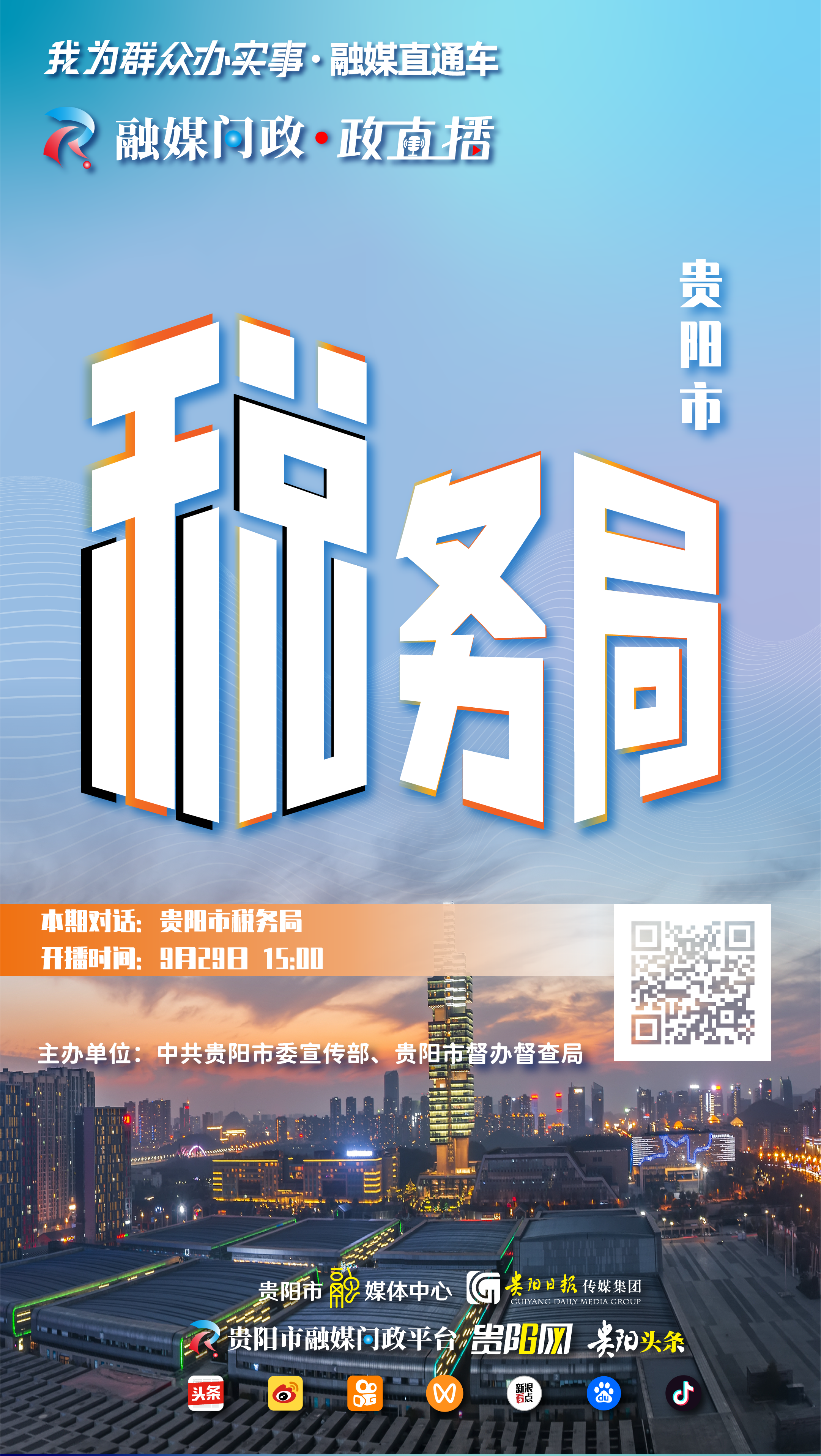 税收关乎国计民生,与每个企业、个人的切身利益息息相关。9月29日15:00,贵阳贵安“我为群众办实事·融媒直通车”直播访谈节目,将邀请贵阳市税务局做客直播间。