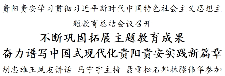 贵阳网·甲秀新闻讯 2月5日,贵阳贵安学习贯彻习近平新时代中国特色社会主义思想主题教育总结会议召开。省委常委、市委书记、市委和贵安新区党工委主题教育领导小组组长胡忠雄出席会议并讲话。他强调,要深入学习贯彻习近平总书记关于主题教育系列重要讲话和重要指示批示精神,认真贯彻落实全国、全省主题教育总结会议精神,全面总结主题教育成效和经验,不断巩固拓展主题教育成果,奋力谱写中国式现代化贵阳贵安实践新篇章。