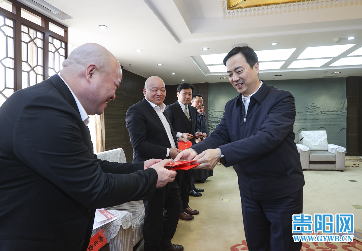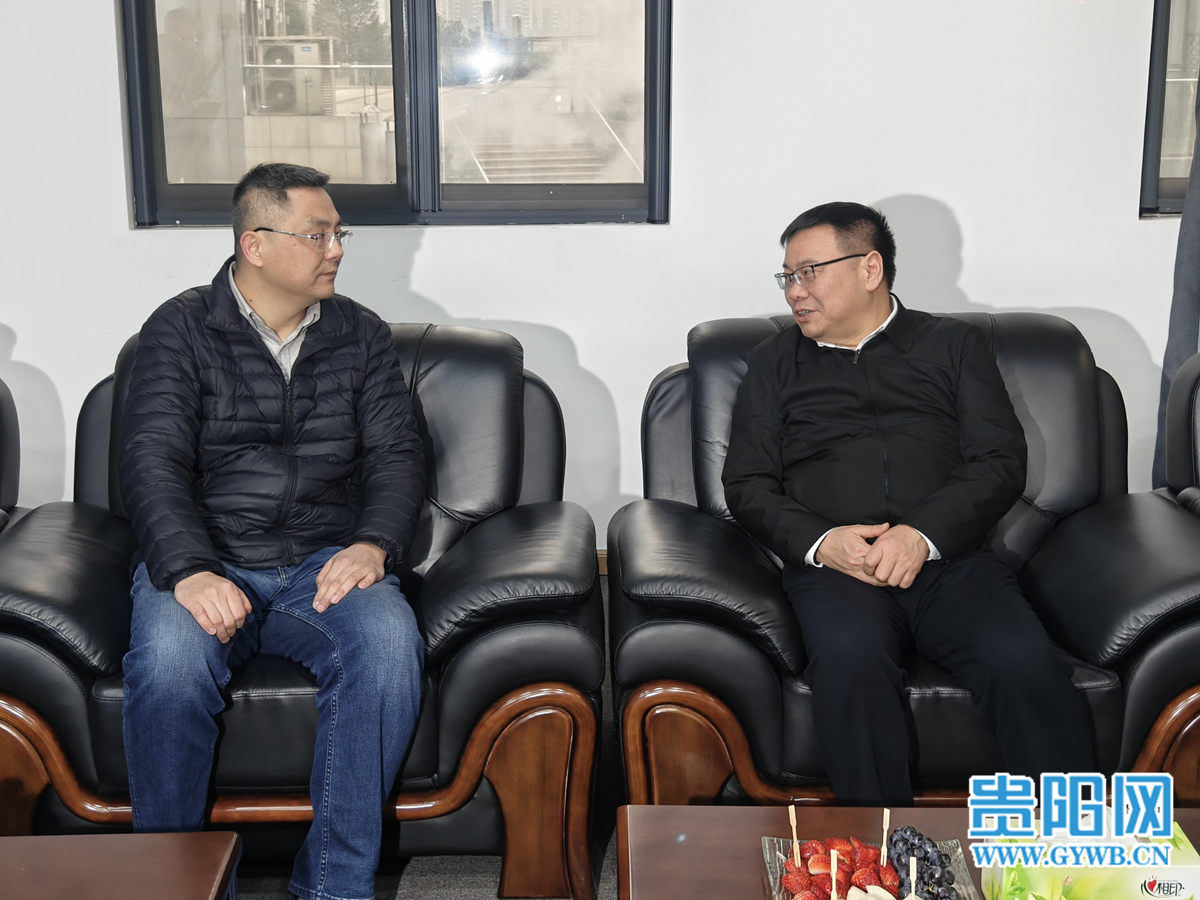 马宁宇与专家人才杨兴海、杨兴荣、李建州座谈交流,详细了解企业发展现状,向他们致以诚挚问候和节日祝福。他说,过去一年,贵阳贵安取得的成绩来之不易,离不开各行业领域专家人才的大力支持。新的一年,希望大家立足本职岗位,勇于开拓创新,加快技术革新,引领和推动更多科技成果转移转化,助力贵阳贵安重点产业高质量发展,积极为“强省会”作出新贡献。我们将持续优化科技创新环境和人才发展环境,让广大专家人才顺心工作、安心发展、舒心生活。