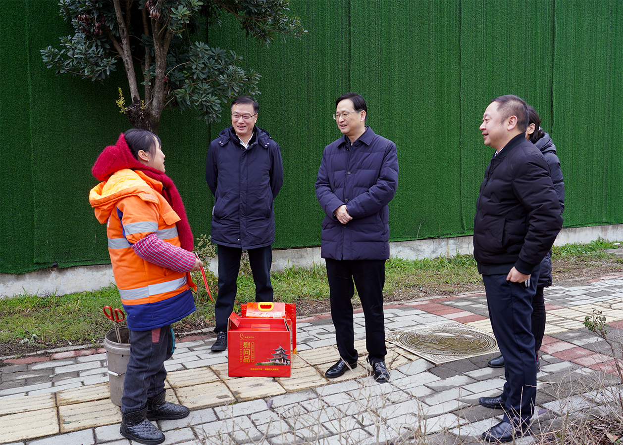 在巢凤街道,付涛为环卫工人雷定原、李恒琼送上新春祝福和诚挚问候,详细询问他们的家庭收入、身体状况、生活情况等,感谢他们为城市干净整洁付出的辛勤劳动,希望他们保重身体,保持乐观心态,努力过上更好的生活。付涛强调,相关部门要积极主动、靠前服务,用心、用情、用力做好困难职工帮扶工作,精神上多关怀、生活上多照顾,以务实贴心举措为其解决实际困难,帮助他们摆脱困境、改善生活。
